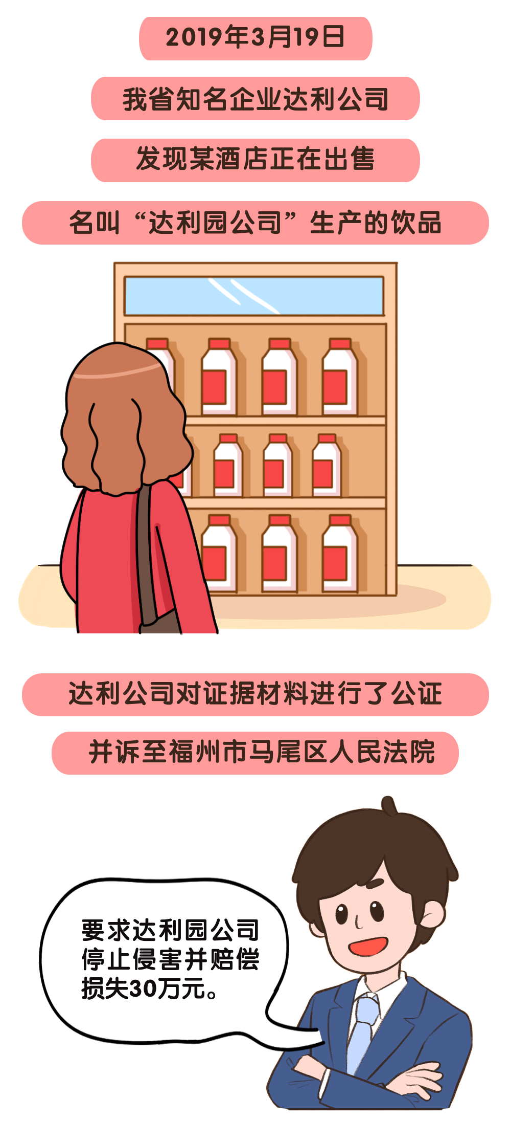 根據(jù)《中華人民共和國反不正當競爭法》第十七條和《最高人民法院關(guān)于審理注冊商標、企業(yè)名稱與在先權(quán)利沖突的民事糾紛案件若干問題的規(guī)定》中第四條規(guī)定,馬尾法院判決:達利園公司應(yīng)停止在其生產(chǎn)、銷售的飲品包裝袋上使用 “福州達利園”字樣,停止在企業(yè)名稱中使用含有“達利園”的字號,停止在飲品的內(nèi)外包裝、展會上使用帶有“達利園”字樣的企業(yè)名稱,并賠償達利公司經(jīng)濟損失和合理費用20萬元。