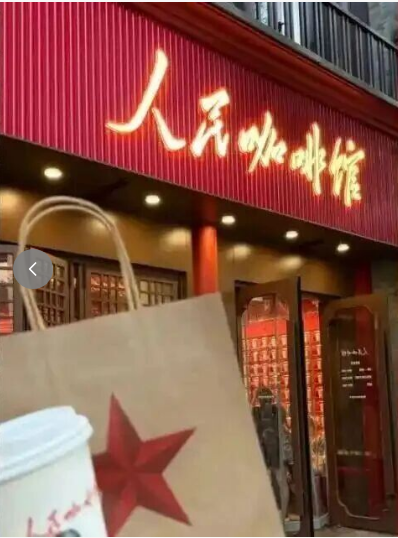 有網(wǎng)友表示,“人民”一詞具有強(qiáng)烈的公共屬性和政治內(nèi)涵,這樣被用于商業(yè)咖啡館的標(biāo)識,令人感到突兀和不適。