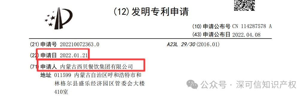 西貝的“速凍復(fù)熱食品”專利布局