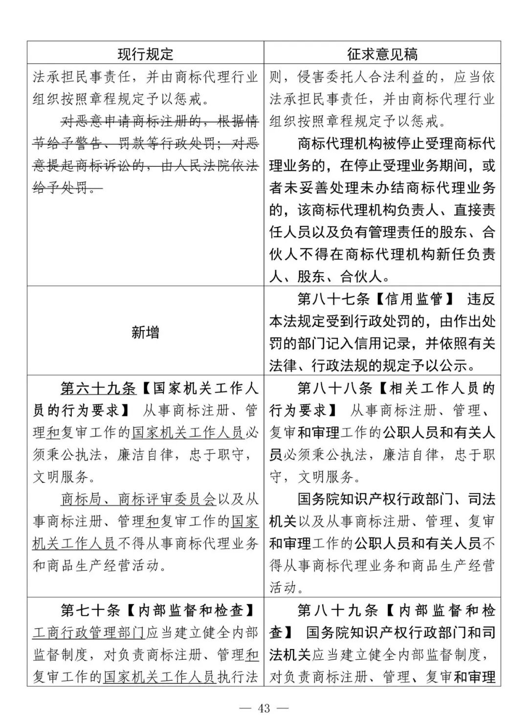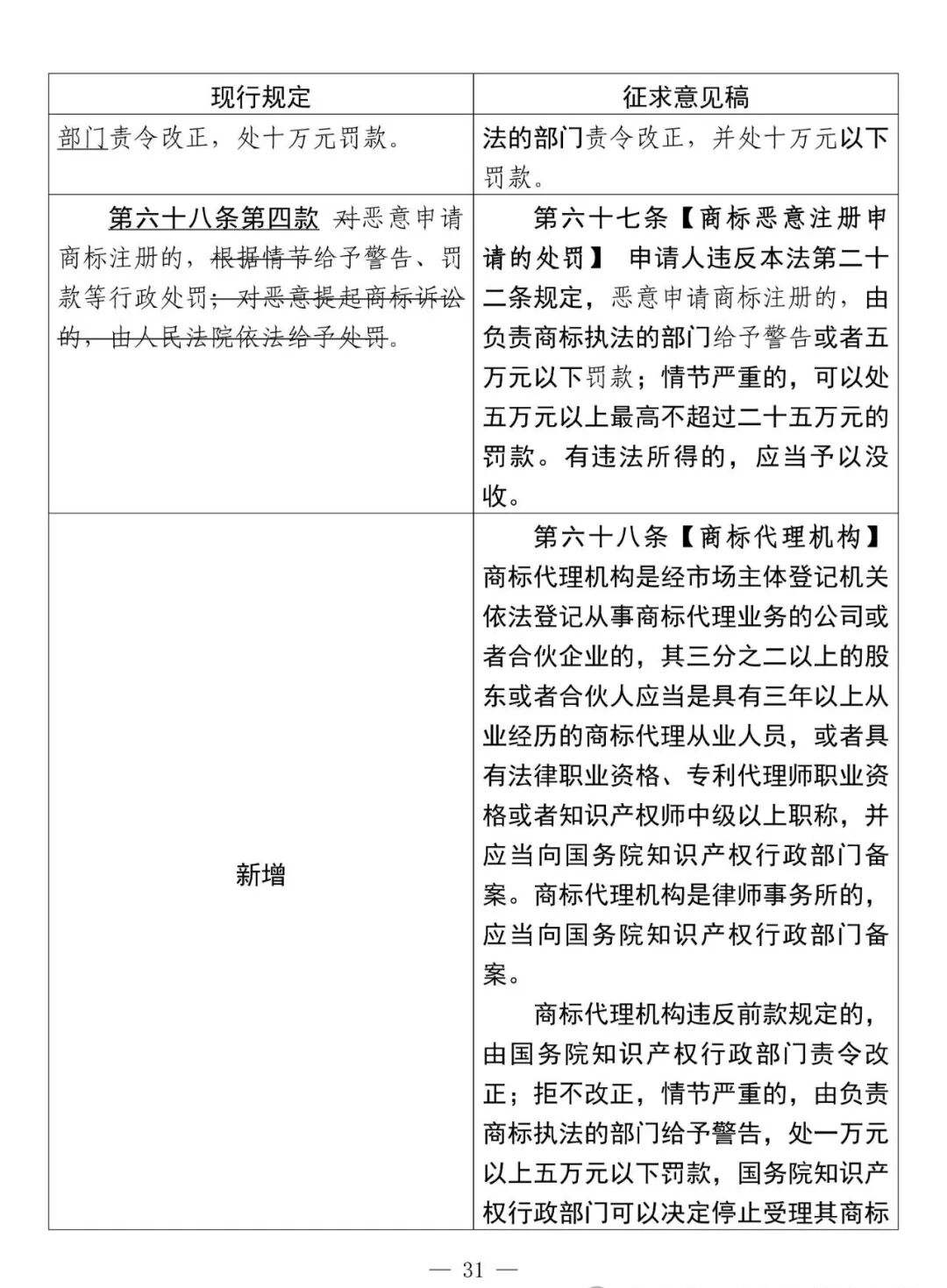 新增的第六十八條:【商標(biāo)代理機(jī)構(gòu)的準(zhǔn)入門檻】三分之二以上的股東或者合伙人應(yīng)當(dāng)是具有三年以上從業(yè)經(jīng)歷的商標(biāo)代理從業(yè)人員,或者具有法律職業(yè)資格、專利代理師職業(yè)資格或者知識(shí)產(chǎn)權(quán)師中級(jí)以上職稱,并應(yīng)當(dāng)向國(guó)務(wù)院知識(shí)產(chǎn)權(quán)行政部門備案。