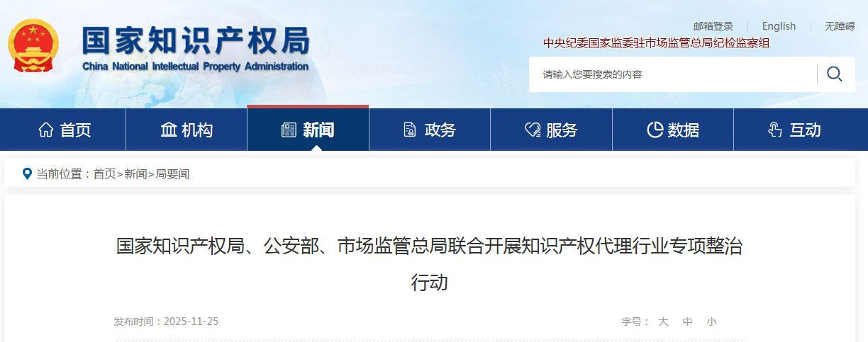 國家知識產(chǎn)權(quán)局、公安部、市場監(jiān)管總局:聯(lián)合開展知識產(chǎn)權(quán)代理行業(yè)專項(xiàng)整治行動